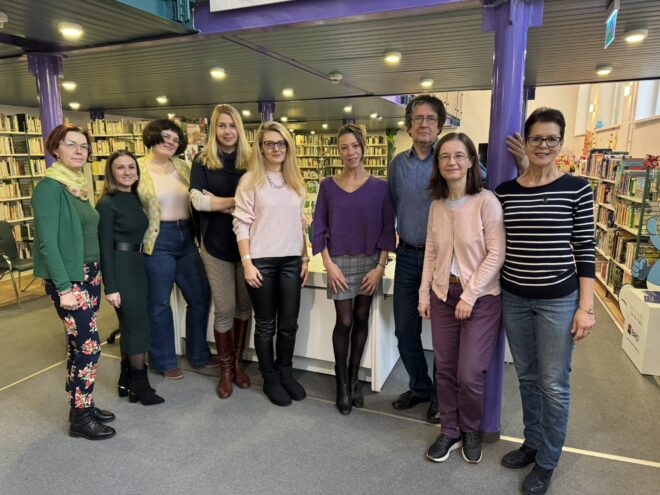 Echipa Institutului Francez din România la Cluj-Napoca îi urează bun venit noii sale directoare, Laurence Levasseur (foto centru, în mov).